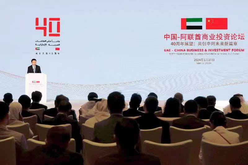 5月31日,凌激副部长兼国际贸易谈判副代表出席中国—阿联酋商业投资论坛并致辞。